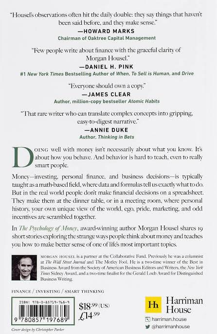Every single person must have financial knowledge. every person can become a millianiar whoever he was floor cleaner in petrol pump or graduate from most reputed University. Any person can earn money while sleeping and any person can be declared bankrupt. It totally up to us. showing off your expensive to other means simplest and fastest way to poor. Wealthy person don't not show the money they are tension free, do whatever they want and live happily but rich man show their money and slowly waste their money. The author want to tell us rich men want to expense millions but how they become millionaire like this. Your money will be grow slowly by compounding but destruction happens suddenly. the authors want to tell us nothing is for free if you invest your money there are two option 1 mutual fund which is risky but right. On the other hand, bank which is safe not much profit. Our aim is to be financially unbreakable which means nothing effect on you about market cycle. trust yourself where is to be invest. Whenever we plan for anything, always remember, we can't decide future. Which means if our plan A fail due to any reason, ready plan B in advance. Another lesson what author want to teach us is that Be optimistic about the future but not paranoid about obstacles to success. Handle your money in right way. If you cant take care of 10 lakhs rupees, how you can manage 10 crore. Take a little bit habbit of investing and saving which is best way for growing like Ronald Read. Morgan says," you can get rich with small salary but no chance of without saving." Best book for finance. Must read for all.