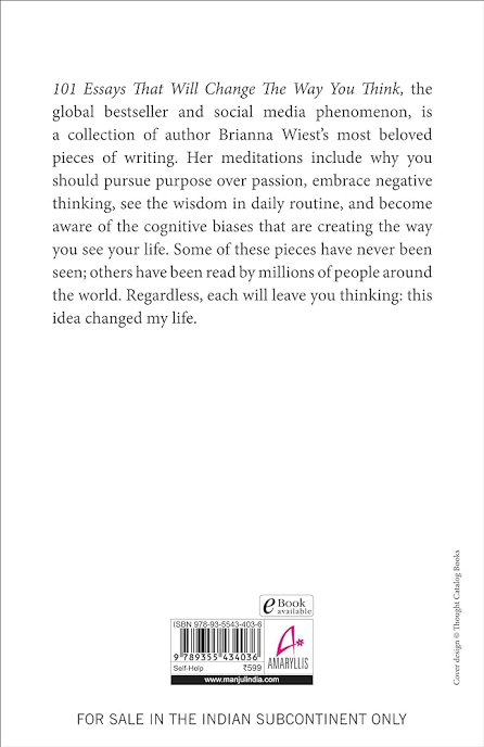 In 101 Essays That Will Change the Way You Think, bestselling author and poet Brianna Wiest explores the interplay between your thoughts, your perceptions, and the way you experience life. She argues that unwanted life circumstances aren't to blame for your bad feelings—only your thoughts about these circumstances are.